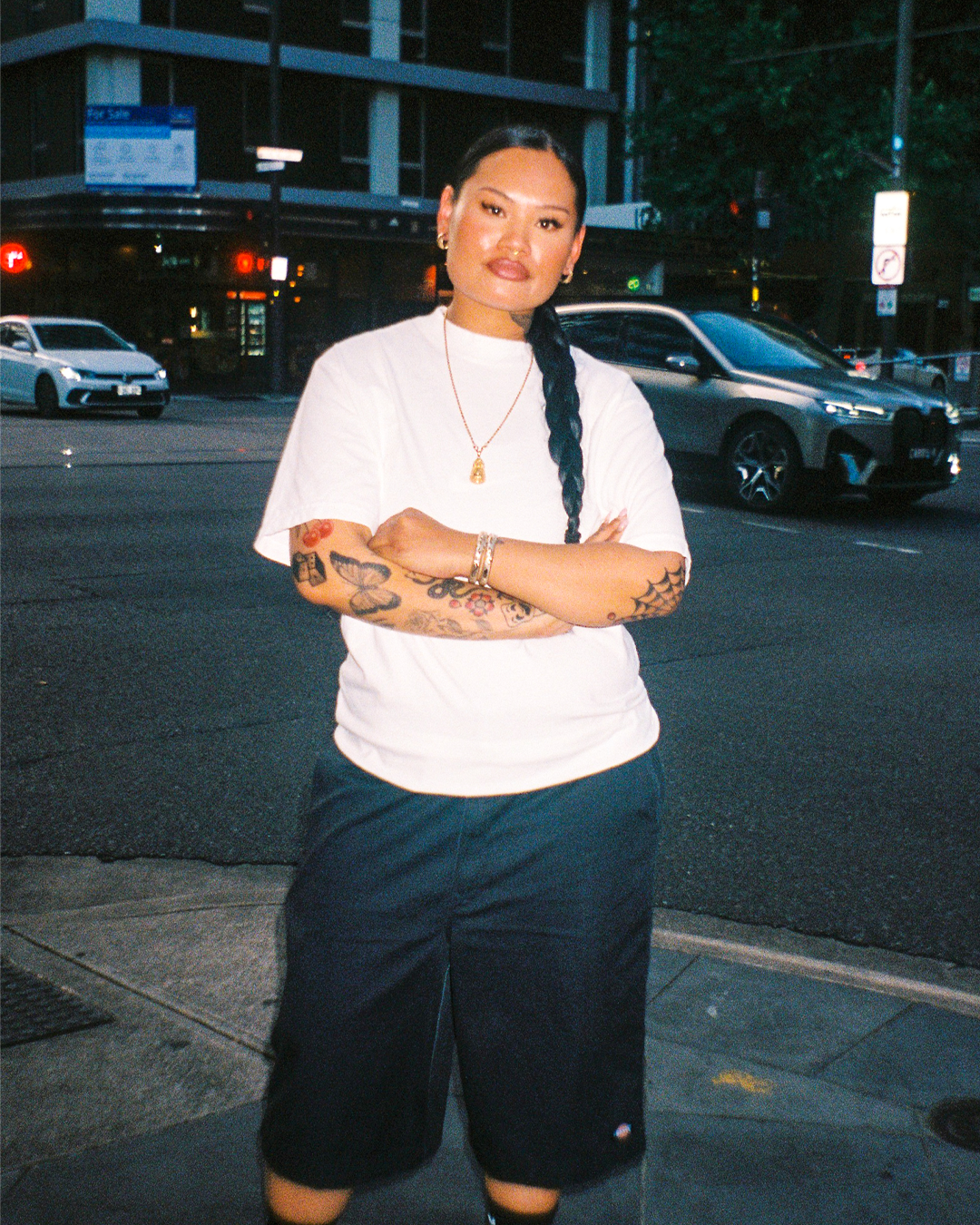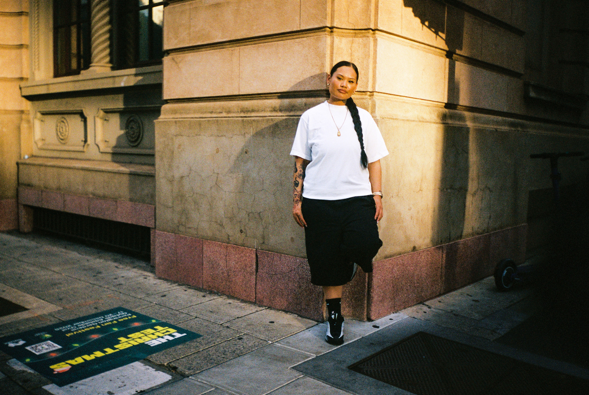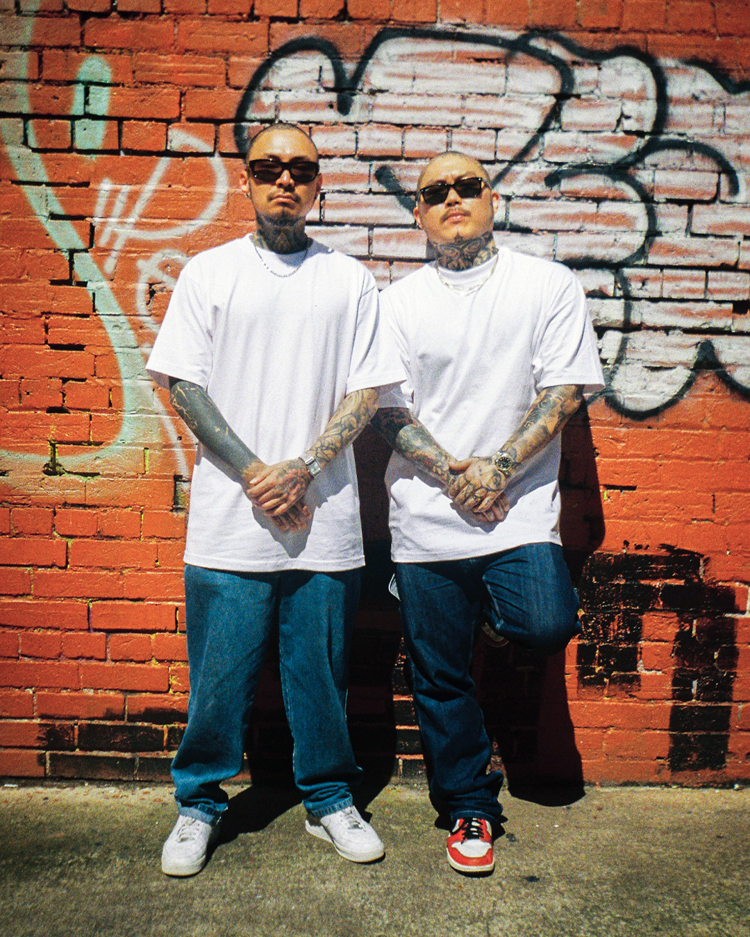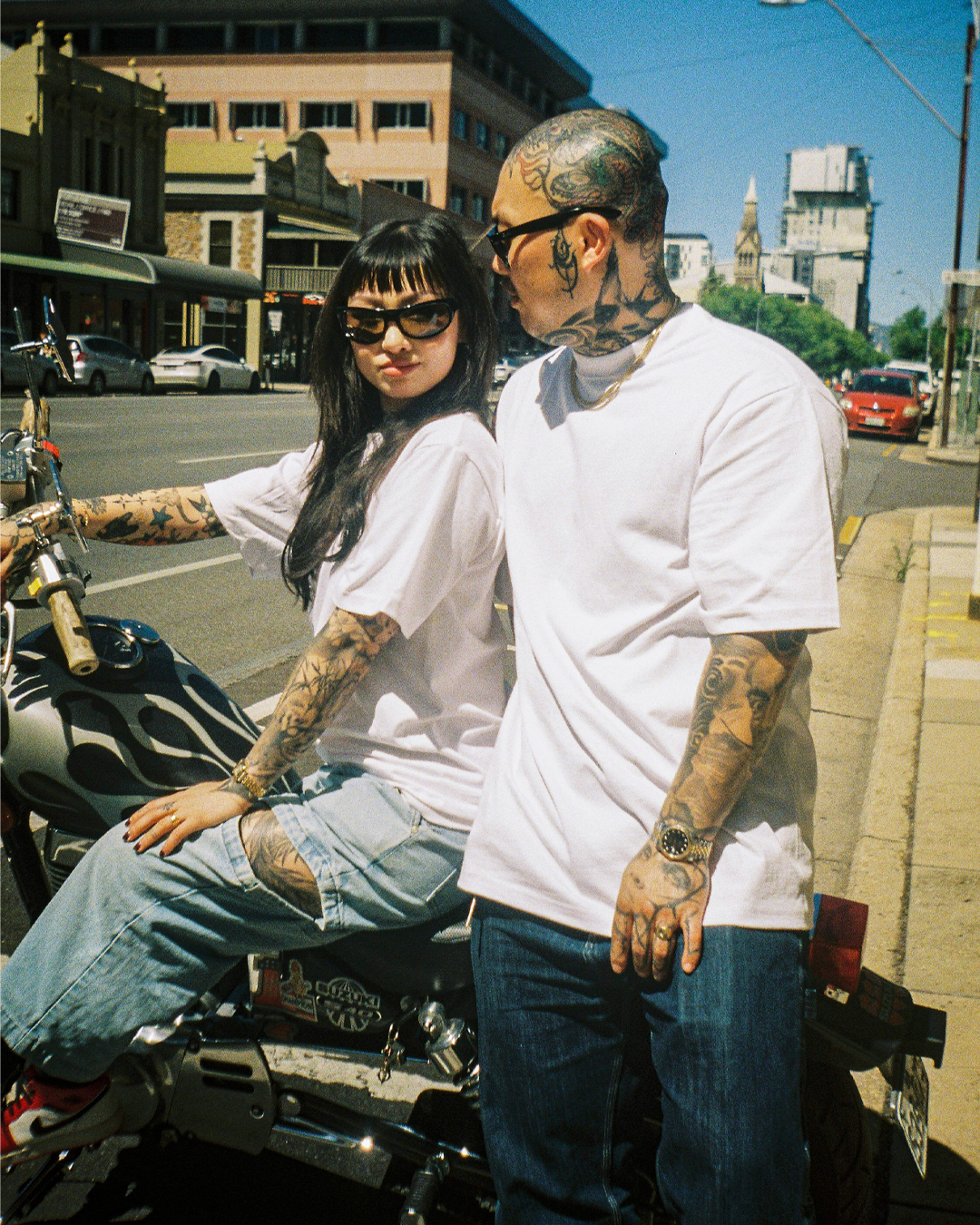 Campaign images for Prime Example & Shaka Wear to promote their 'Max Heavyweight' T shirts.